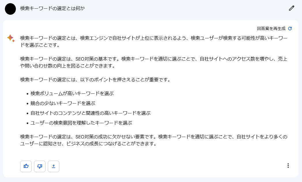 さらに、H2「検索キーワードの選定」を使って質問します。